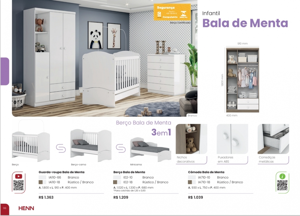 Bala De Menta Quarto Infantil | Roupeiro | lA110 | Henn 0126