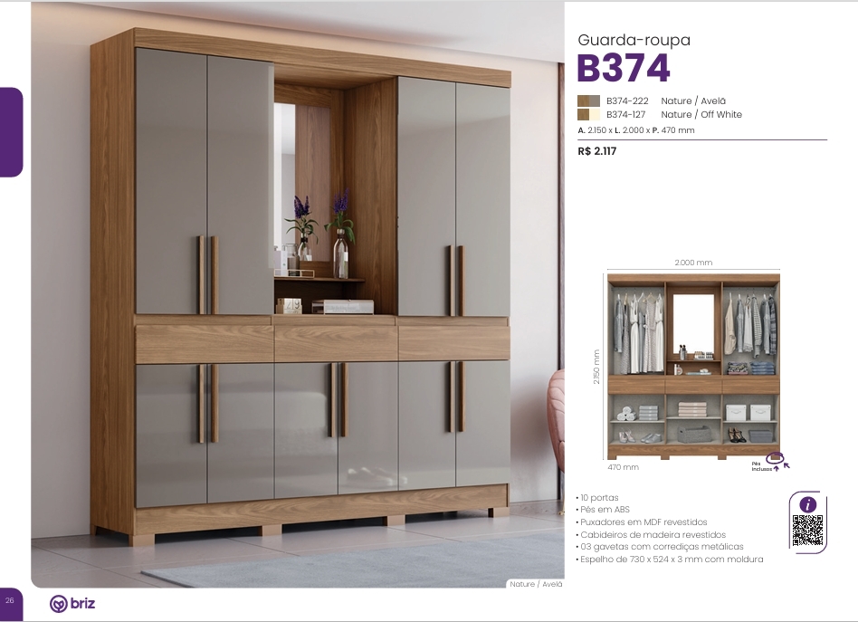 Roupeiro 6 Portas 270 | Politorno 0226 S/Espelho 2500,00 E Versão C/Espelho 3128,00