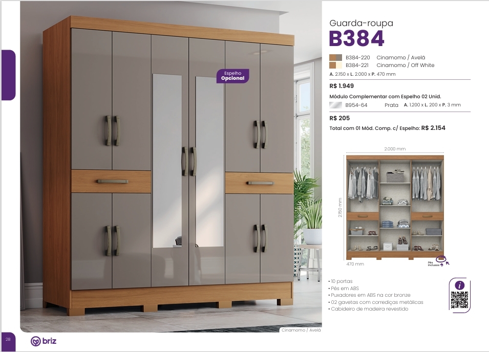 Roupeiro Lucca | D348 | Com Espelho | Henn 0126