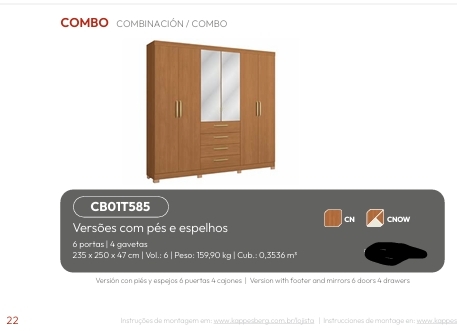 Roupeiro 6 Portas | T585 | Kappesberg 0226 C/Espelho 1590,00 E Versão C/Espelho 1850,00