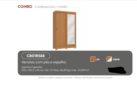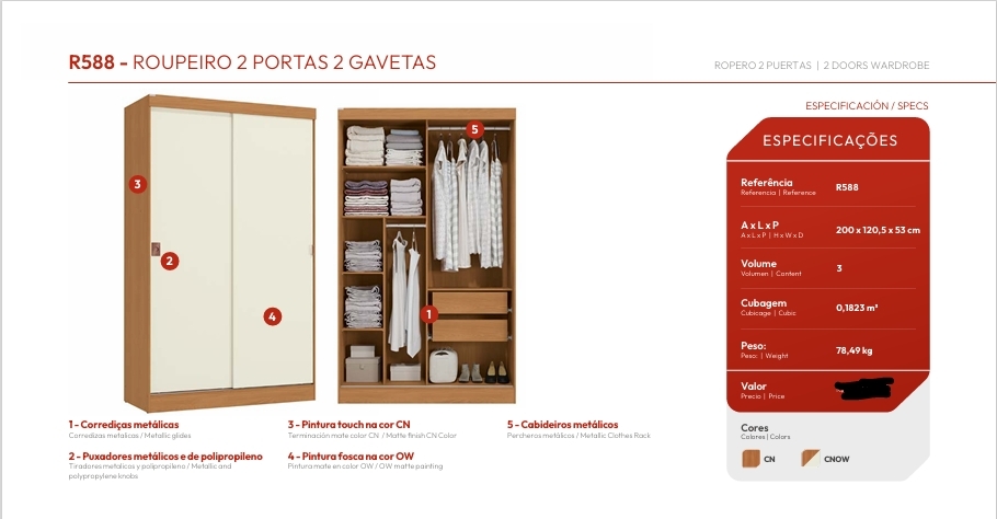 Roupeiro 2 Portas | R588 | Kappesberg 0226 S/Espelho 780,00 E Versão C/Espelho 970,00