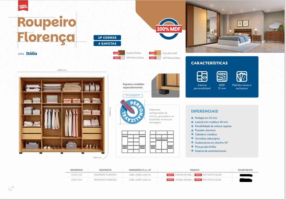 Roupeiro Florença 2P Correr | Móveis Primavera 0226 S/Espelho 3060,00 E Versão C/Espelho 3510,00