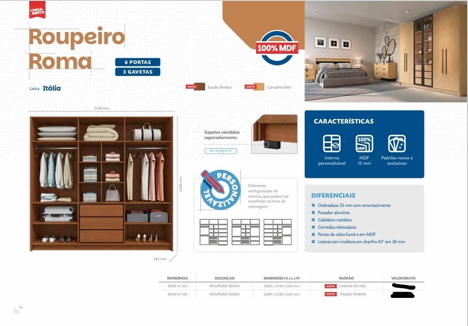 Roupeiro Roma 6P | Móveis Primavera 0226