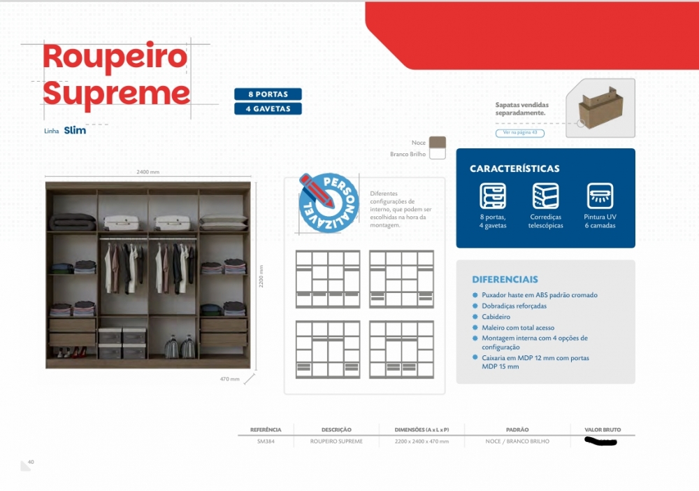 Roupeiro Supreme 8 Portas | Móveis Primavera 0226 S/Espelho 1380,00 E Versão C/Espelho 1650,00