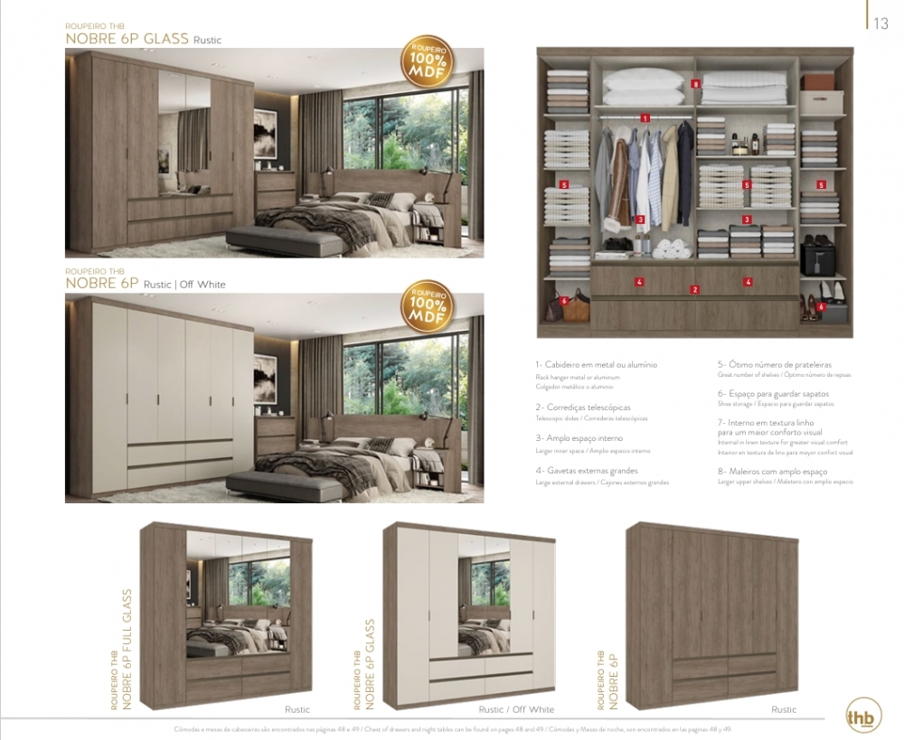Roupeiro Nobre 6P | 5895 - 5896 - 5897 - 5893 - 5894 -5892 | Thb 0226 S/Espelho 1600,00 E Versão C/Espelho 2060,00