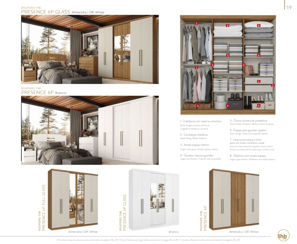 Roupeiro Presence 6P | 5730 - 5725 - 5726 - 5827 - 5825 - 5826 | Thb 0226 S/Espelho 1000,00 E Versão C/Espelho 1290,00