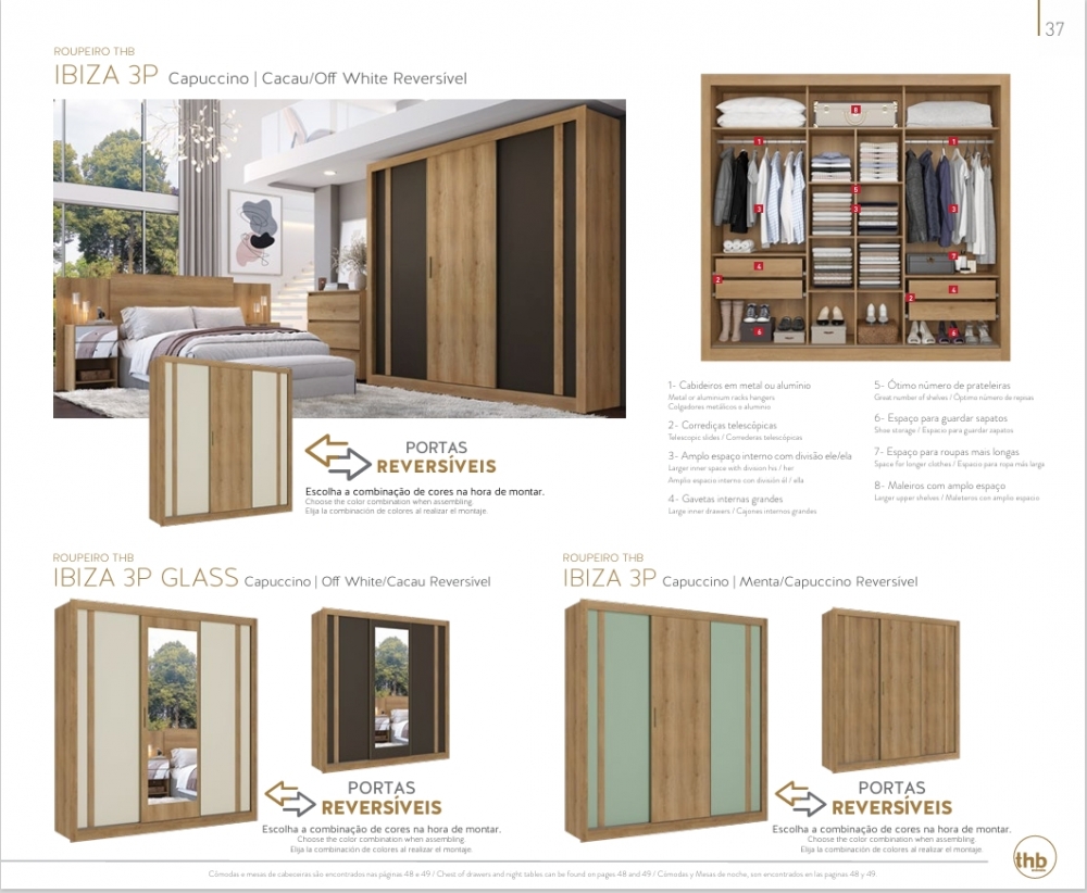 Roupeiro Ibiza 3P | 5809 - 5807 - 5808 - 5800 | Thb 0226 S/Espelho 1500,00 E Versão C/Espelho 1700,00