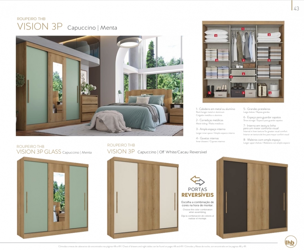Roupeiro Vision 3P | 5862 - 5861 - 5873 -5872 | Thb 0226 S/Espelho 980,00 E Versão C/Espelho 1090,00