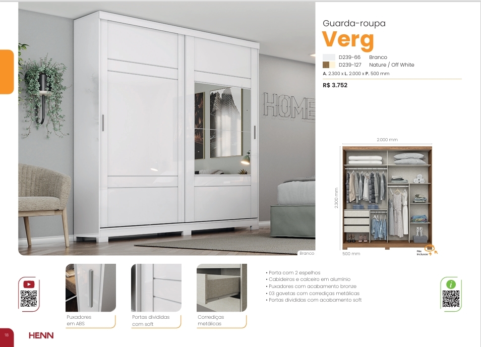 Seletto Roupeiro 2 Portas Com Espelho | MC09 | Henn 0126