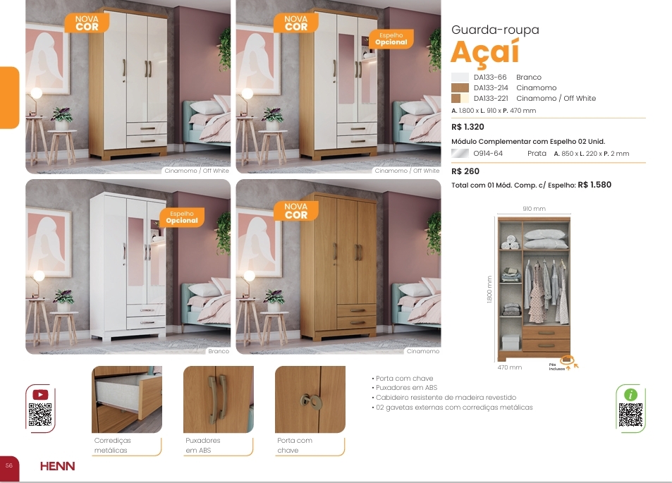 Roupeiro Açaí | DA133 | Com Espelho | Henn 0126