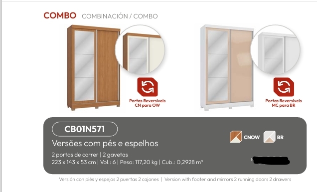 Roupeiro 2 Portas | N571 | Kappesberg 0226 S/Espelho 1120,00 E Versão C/Espelho 1358,00