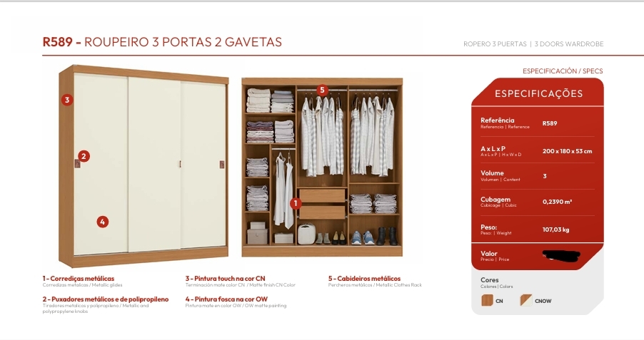 Roupeiro 3 Portas | R589 | Kappesberg 0226 S/Espelho 1030,00 E Versão C/Espelho 1230,00