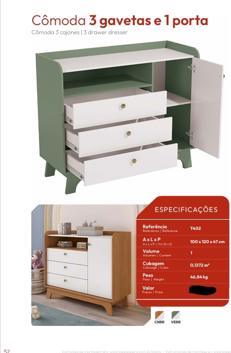 Cômoda 3 Gavetas 1 Porta | T402 | Kappesberg 0226