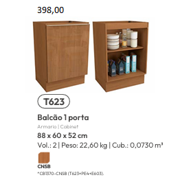 Cozinha Venaly | Balcão 1 Porta | C581 | Henn 0126