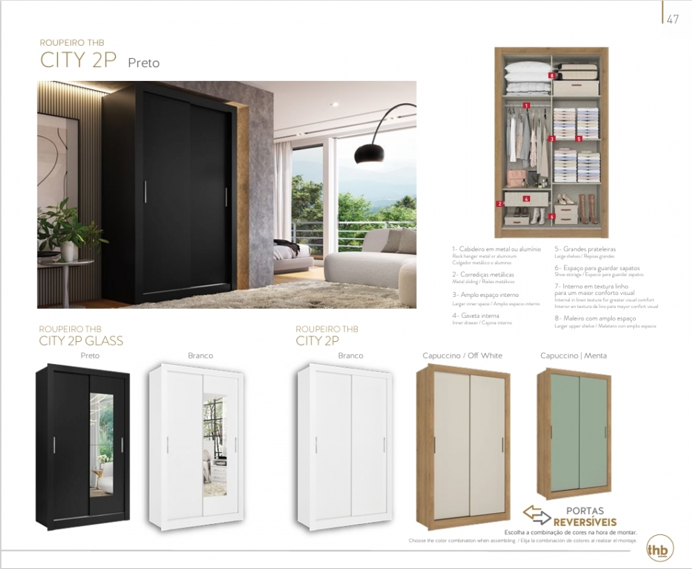 Roupeiro City 2P | 5712 - 5713 - 5675 - 5677 - 5915 - 5914 | Thb 0226 S/Espelho 600,00 E Versão C/Espelho 700,00