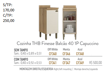Cozinha Modulada Finesse | Valor Das Peças Avulsas Acima De Cada Imagem Do Produto | Thb 0226